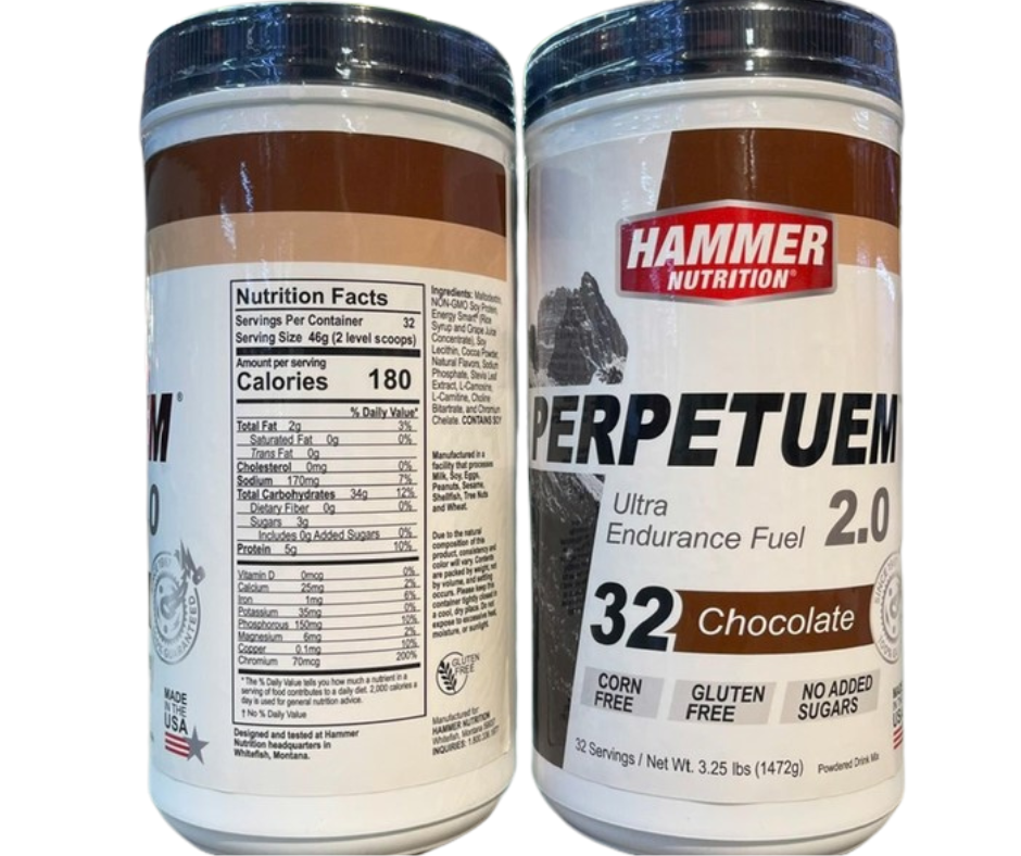 - Carbohydrates – Như tất cả các loại nhiên liệu từ Hammer Nutrition, chúng ta không bao giờ thêm đường đơn giản vào sản phẩm. Perpetuem chứa maltodextrin, cung cấp gần 87% thành phần calo của nó trong carbohydrates chuỗi dài.